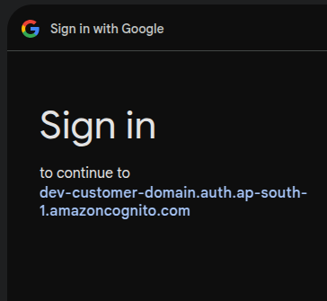 https://dev-customer-domain.auth.ap-south-1.amazoncognito.com- Add this URL to: