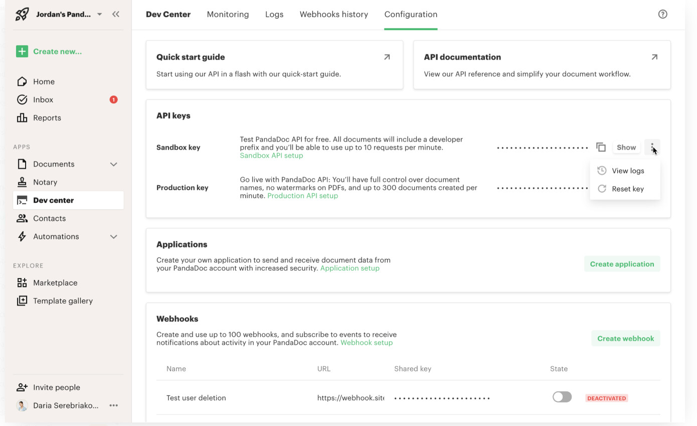 Configure the Webhook in PandaDoc
